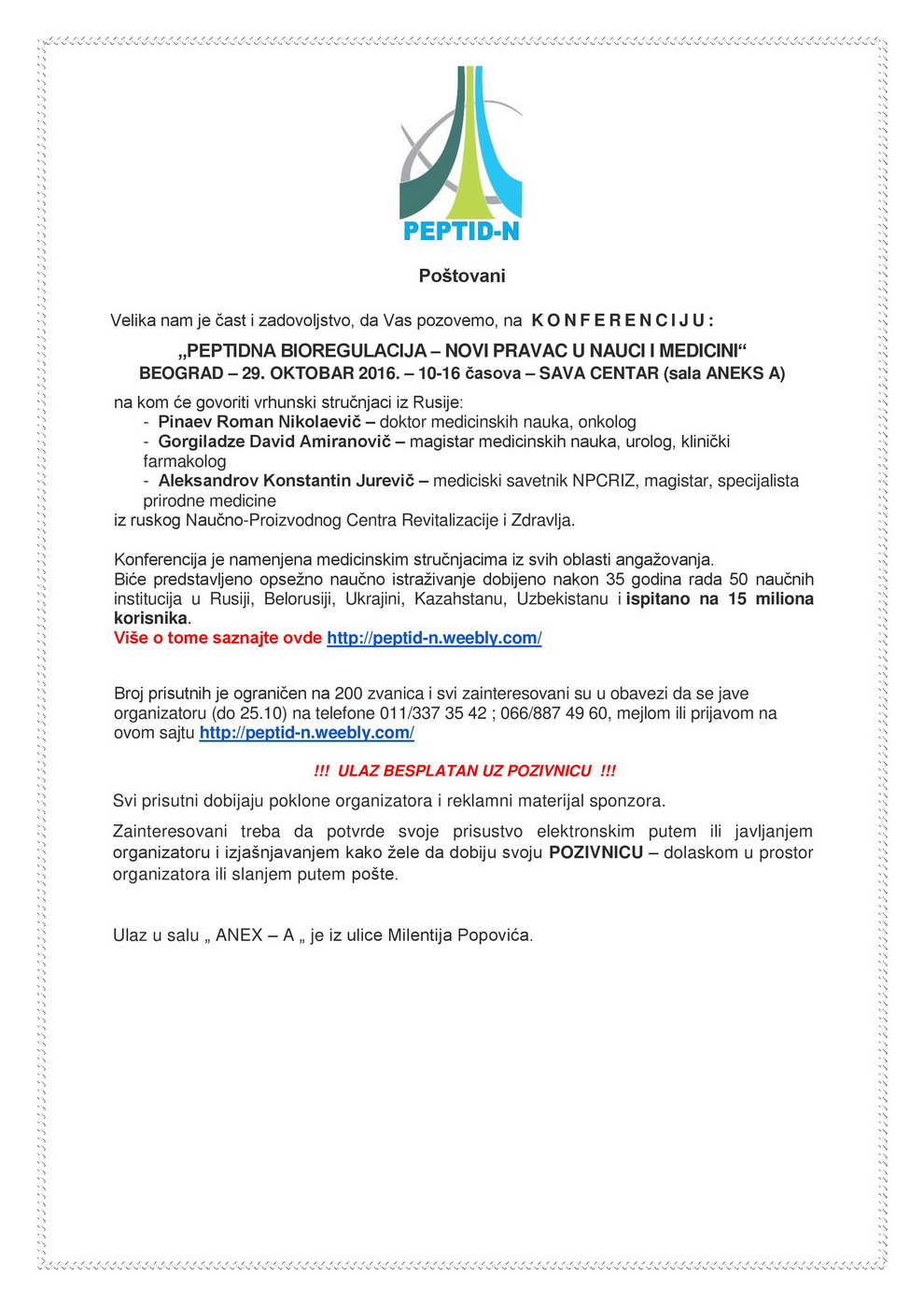 K O N F E R E N C I J A "PEPTIDNA BIOREGULACIJA – NOVI PRAVAC U NAUCI I MEDICINI"