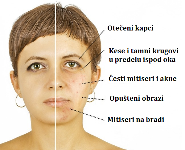 Ako u ogledalu vidite otečene kapke, vreće ispod očiju, upalu na bradi i bubuljice po celom licu, onda su to znakovi nepodnošenja laktoze.